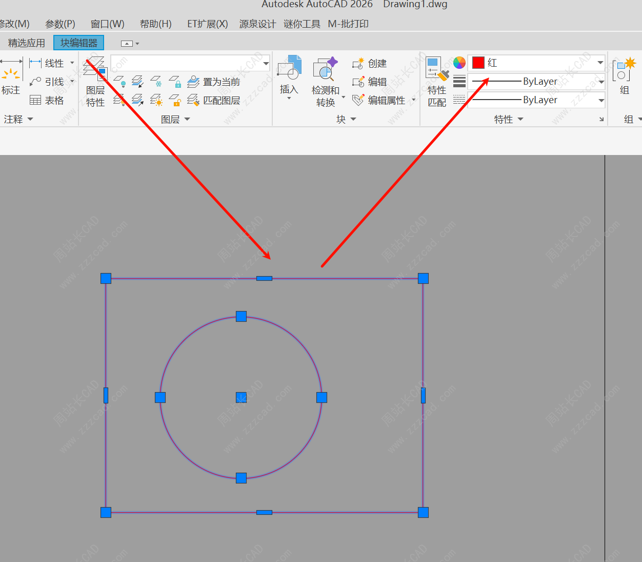 - 修改图块内部实体所在图层颜色(包括嵌套块)