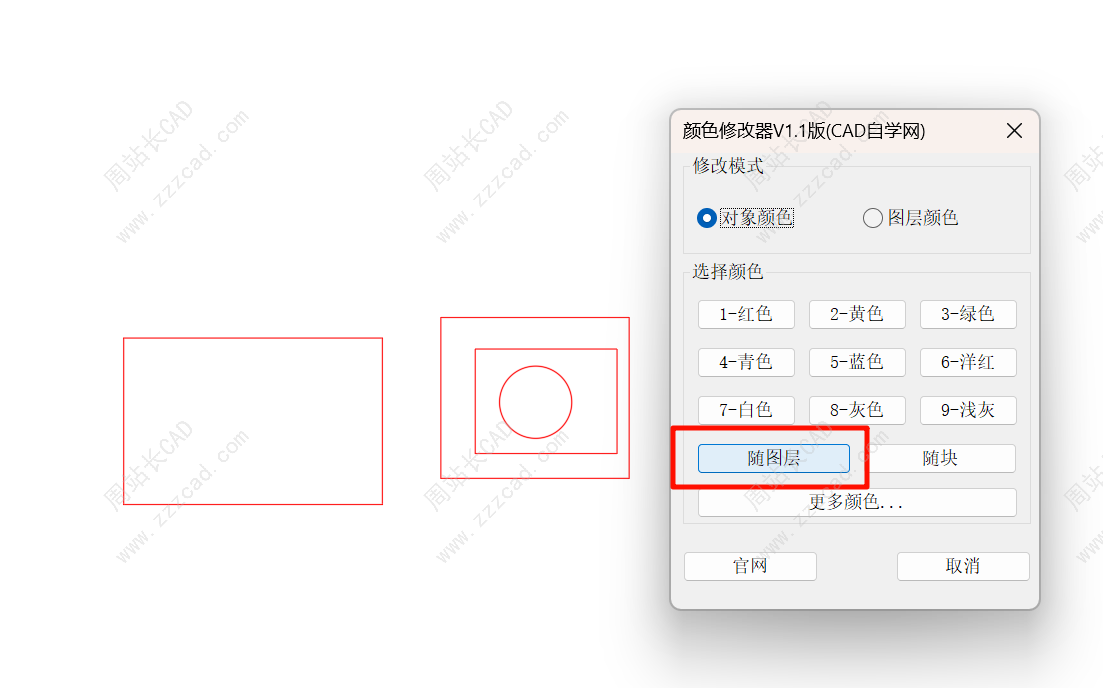 前段时间给大家分享了CAD颜色修改插件,虽然很实用,支持修改对象或者图层颜色,但是不支持块参照,更不支持嵌套块,昨晚周站长有用Claude给大家辅助写了个超强CAD颜色修改器。如图: