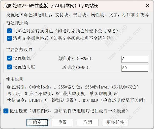 - 增加参数记忆功能,软件可以记住你的设置啦,跨图纸,重启CAD和电脑都能记住。