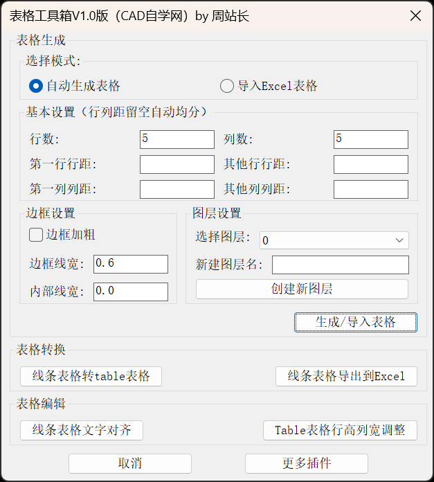 注:链接内已经更新2.0版本,处理复杂表格更强大,包括支持导入指定区域单元格到CAD。