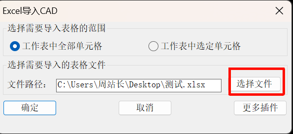 选择文件,导入表格会自动把表格路径加入,如果没有提前打开excel,这边启动稍慢。