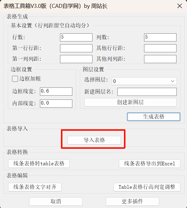 输入快捷键BGGJX调用插件,点击导入表格。