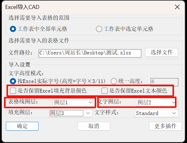 今天又带来重要更新,excel导入CAD真正的1:1还原,3.0版本,导入Excel表格更强大,1:1还原导入,支持导入字高设置(可按excel实际字高和统一高度)、是否保留填充背景、文本颜色、表格线图层、文字图层、填充图层、文字样式。
