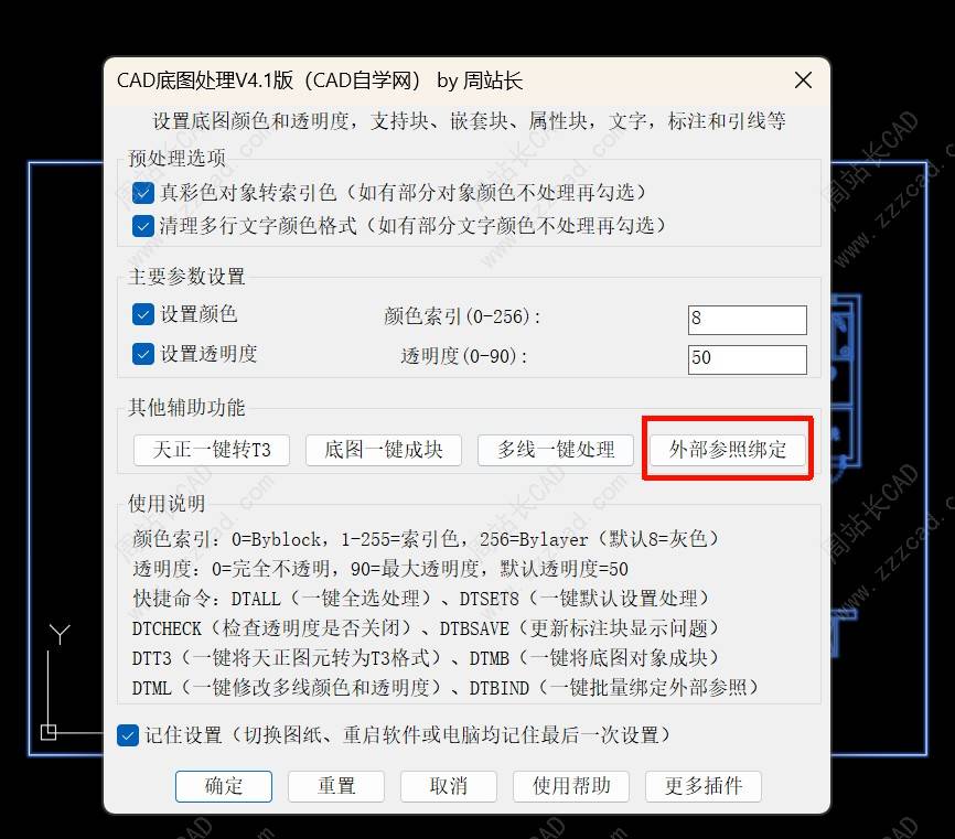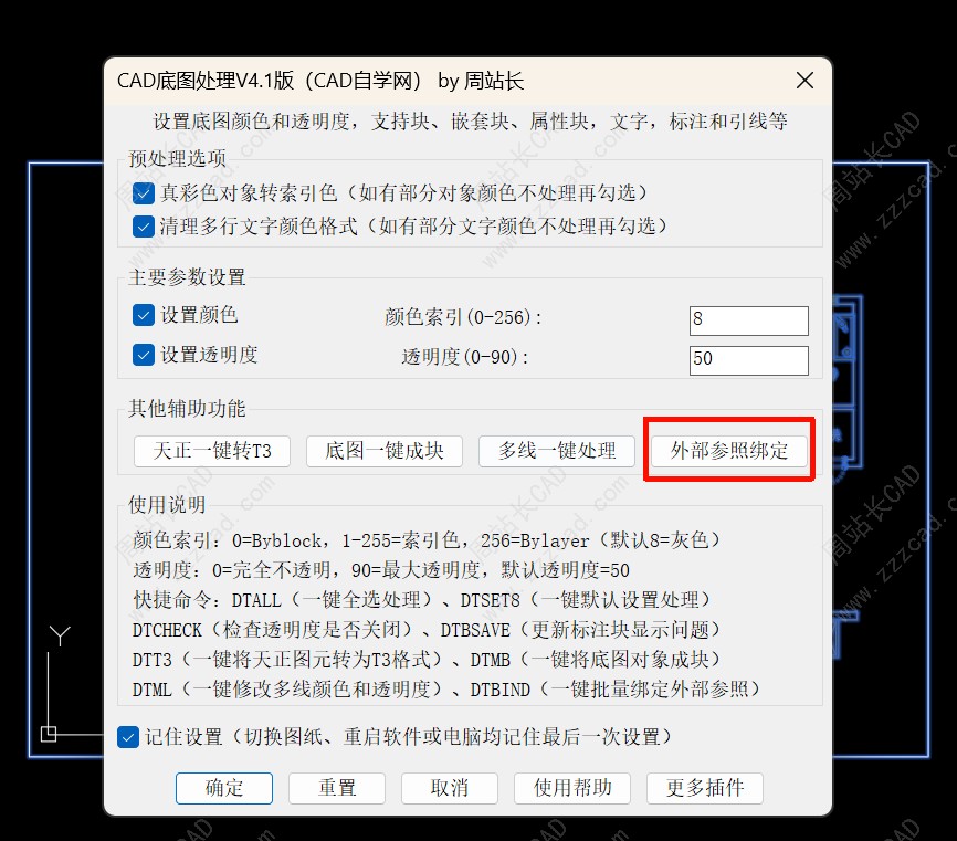 前面写了一个CAD底图一键改颜色和透明度插件,非常受欢迎,可以说是无死角一键让底图灰8,其他插件处理不了的对象,该插件也可以,快有半个月没有更新,前面有位用户让我增加一键绑定外部参照,一直没有时间没增加。
