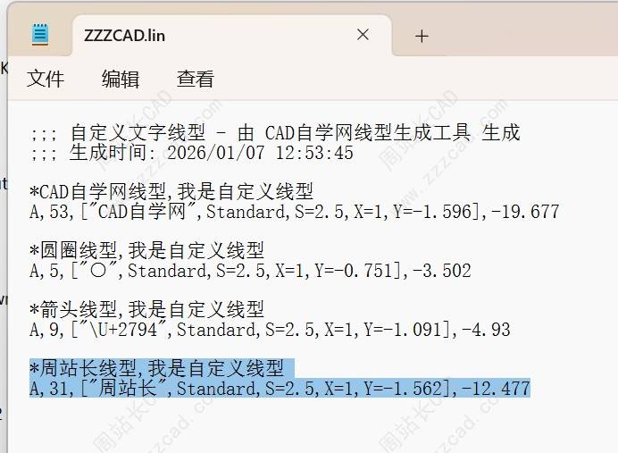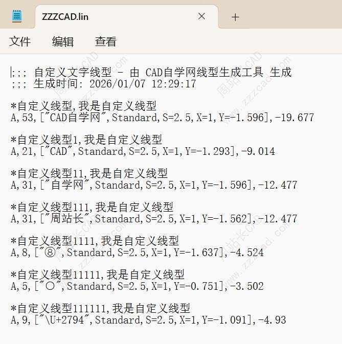 2、生成的不同线型全部追加在一个lin文件里,如图。