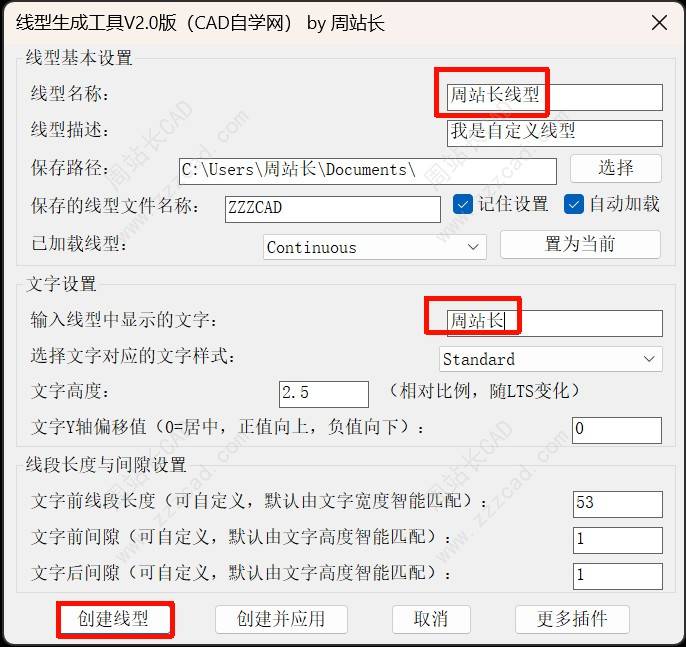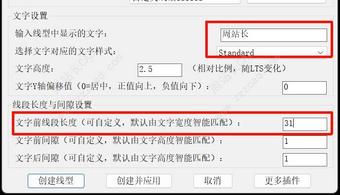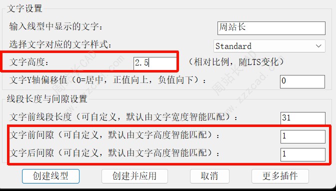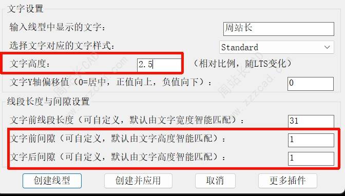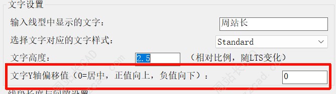 5、所有设置参数全部被处理过,简单易懂,包括线型中线段长度、间隙距离、文字Y轴偏移量、文字高度、文字样式等。