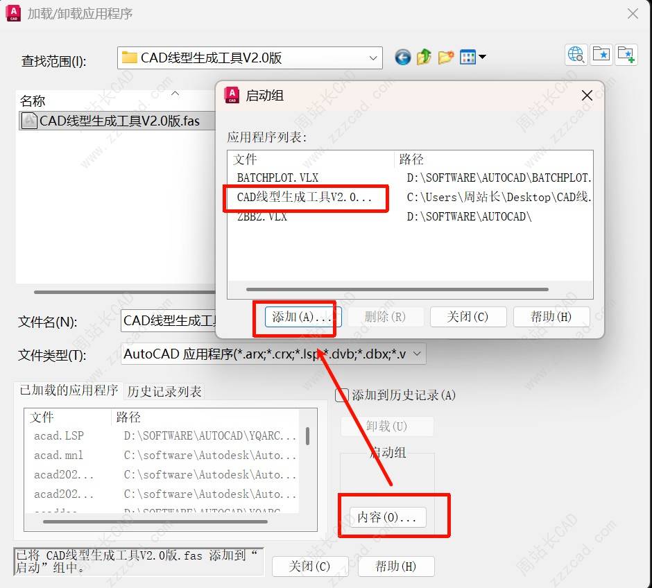 启动组内容里也要添加哈,不然自定义的线型不会自动加载到新图纸中,每次都要重新加载。