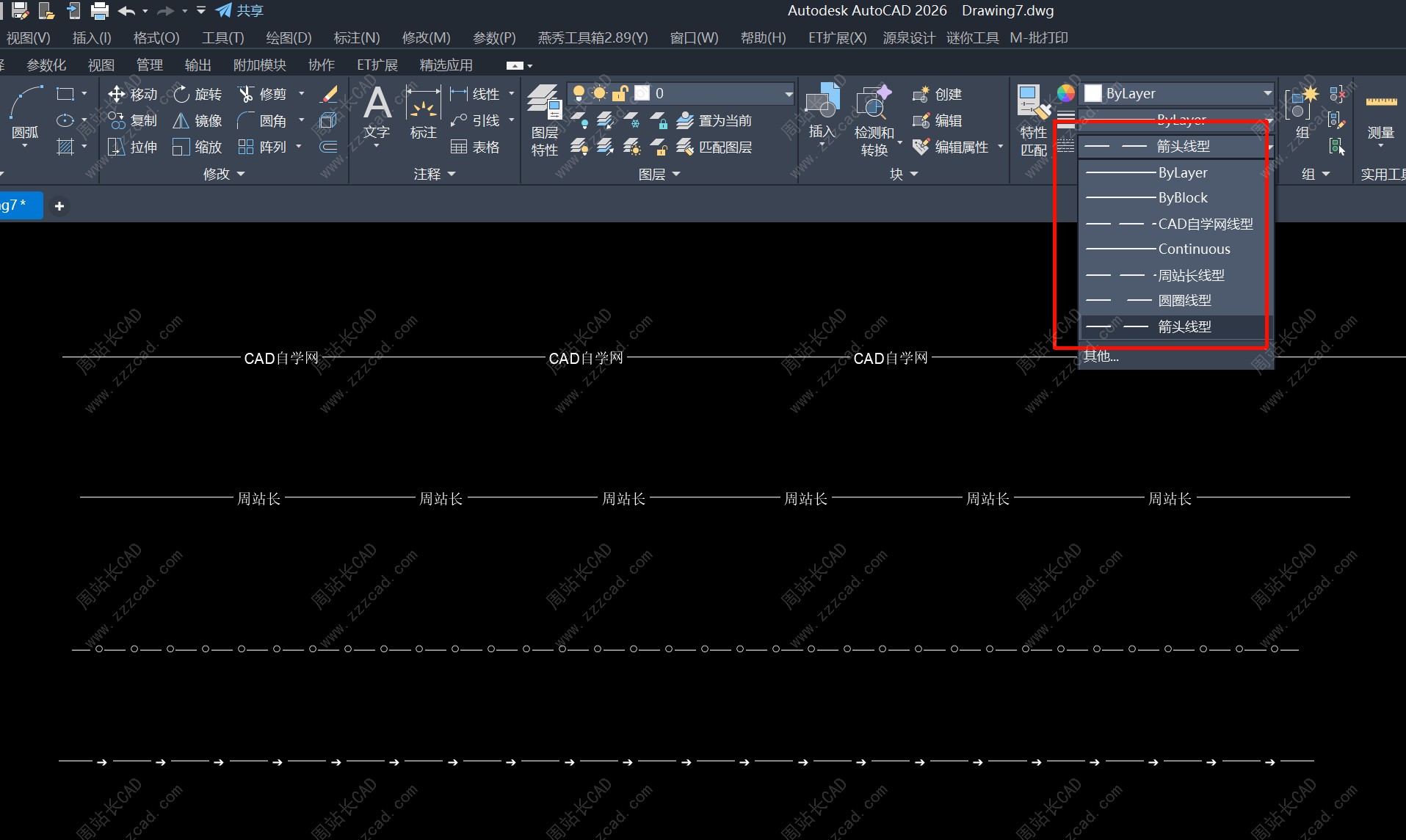 比如我上面创建四个线型,我们直接选择使用就行了,非常简单。