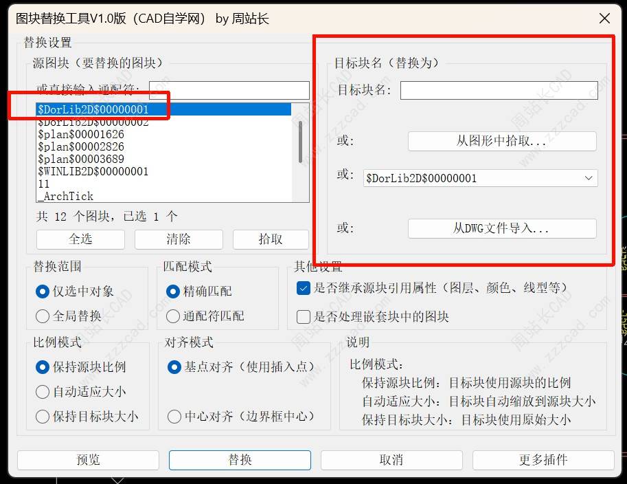 市面上图块替换工具也有,但大多数比较简单,只是单纯的替换,没法完成工作,该工具特别强大,以下是插件介绍: