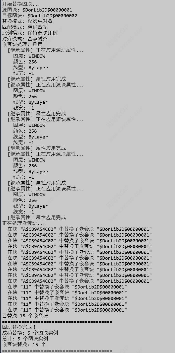 最终效果非常完美,保留源块比例、插入点,属性等,并且嵌套块中的图块也会替换。