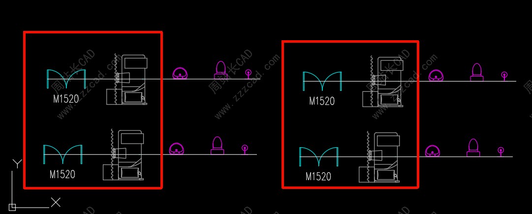 假如我需要修改这个门和窗基点到中心,所有同名块包括嵌套块内块都要修改,并且保持现有位置不变,选择这两个对象回车。