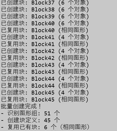 图形签名对比:具备强大的图形签名比对功能,自动识别完全相同的图形组,复用同一个块定义,有效精简图纸体积。