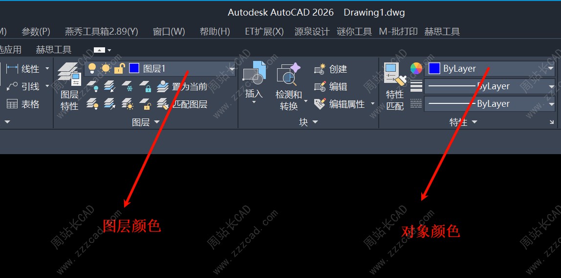 对象颜色和图层颜色如下,对象颜色也就是特性颜色,优先级大于图层,如果你两个颜色不一样,你看到的颜色就是特性颜色,不要问我,周站长,为什么我改了图层颜色,对象颜色没变啊,大多数情况就是这个原因。