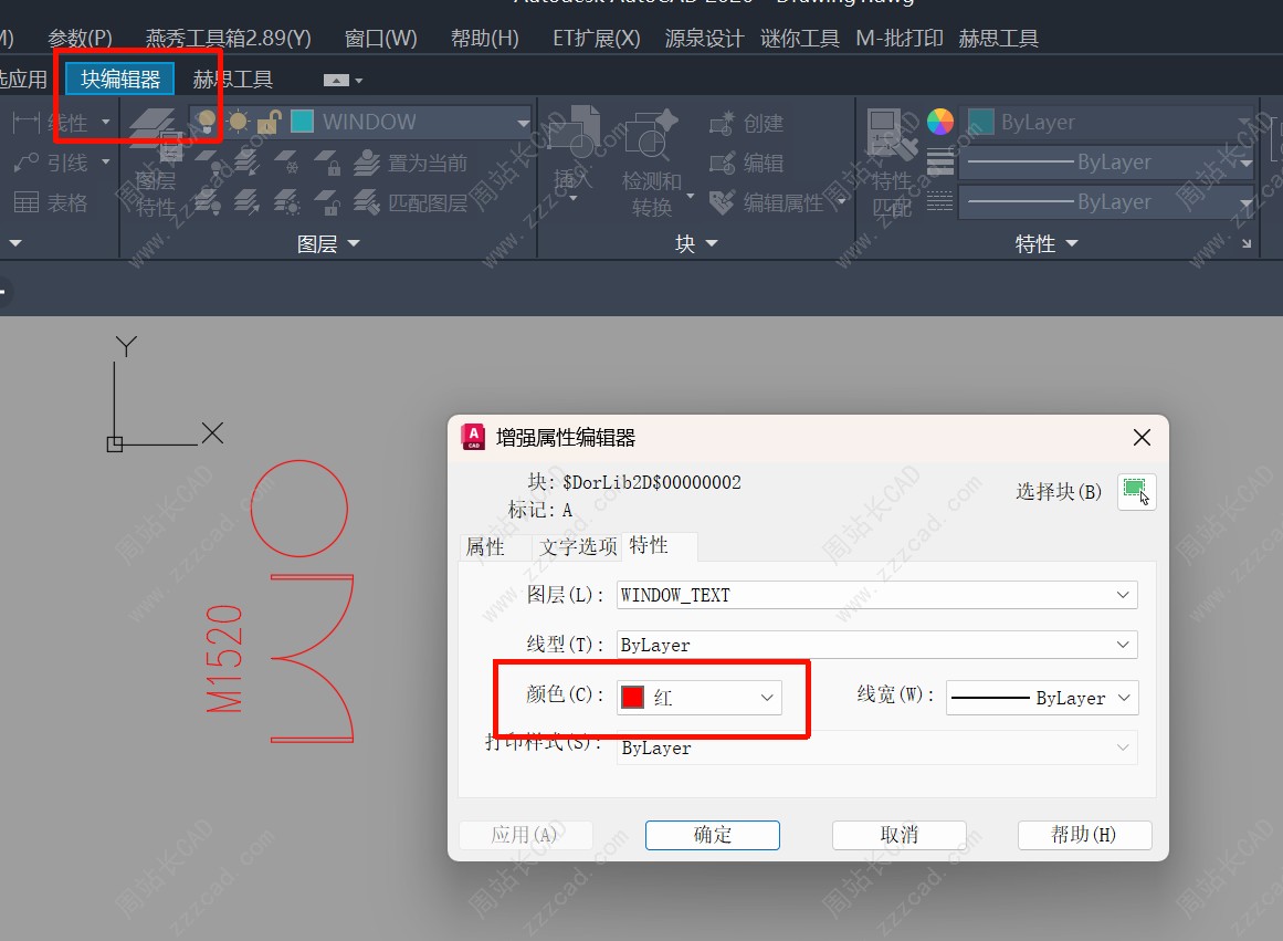 嵌套块内都变了,包括属性块属性文字(确保所有对象颜色都改)。