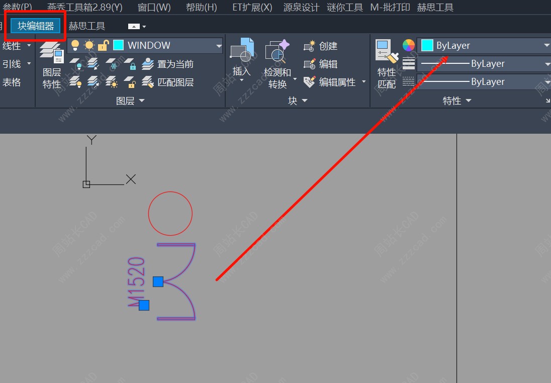 注:为什么块引用颜色改了,块没变化,因为块内对象并不是byblock,都有自己的颜色。