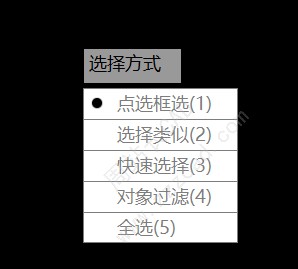 比如我们选择强制对象颜色后提示选择方式,这里有五种方式,分别对应CAD软件的款选、类似选择、快速选择、过滤选择、全选,这里我就不介绍了,直接选择回车默认。
