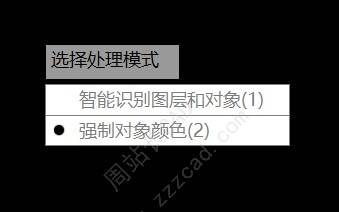选择处理模式,1是智能识别图层还是特性,将你看到的颜色强制改成目标色。2是修改对象特性颜色。