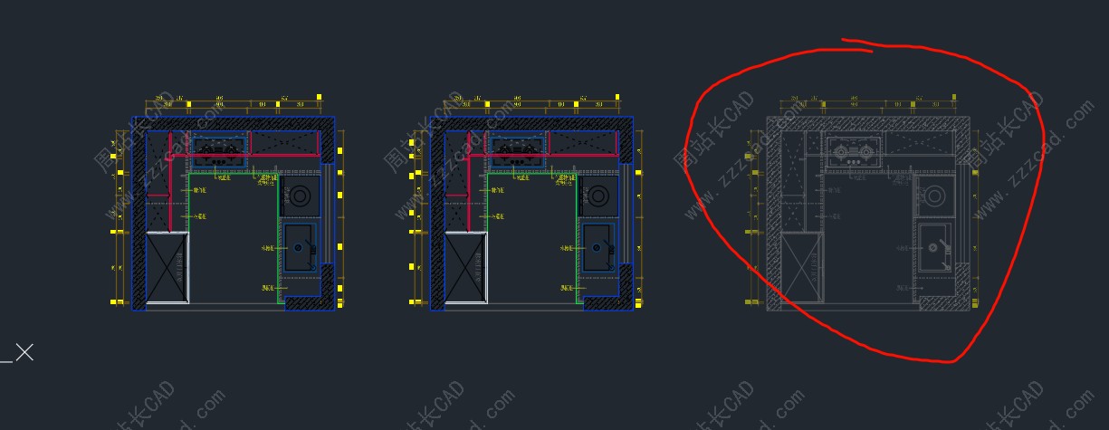 比如这里有三张图,我想只处理一张图纸底图颜色和透明度,其他不要改。