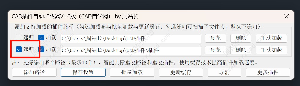 2、灵活的路径与层级管理:支持用户自定义添加多个插件文件夹路径。您可以为每条路径独立配置是否启用加载以及是否递归扫描子文件夹,实现高度定制化的按需加载。