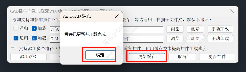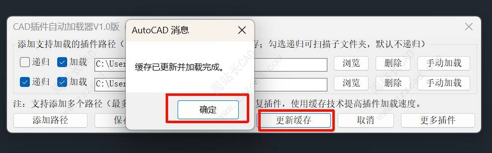 再点更新缓存就好了,以后即可自动缓存加载你所有路径下的插件。