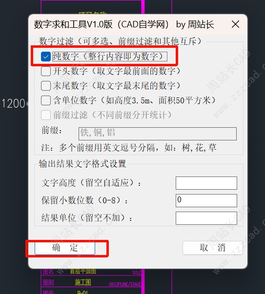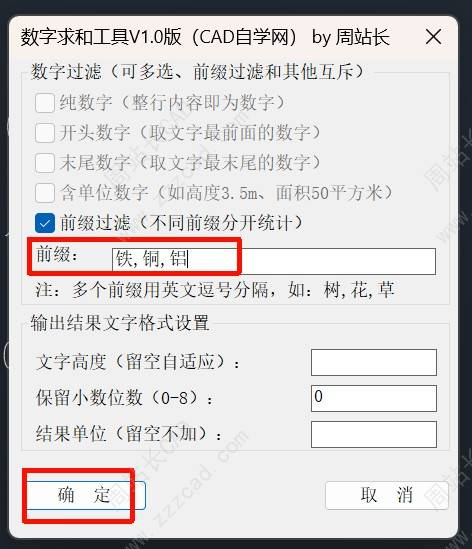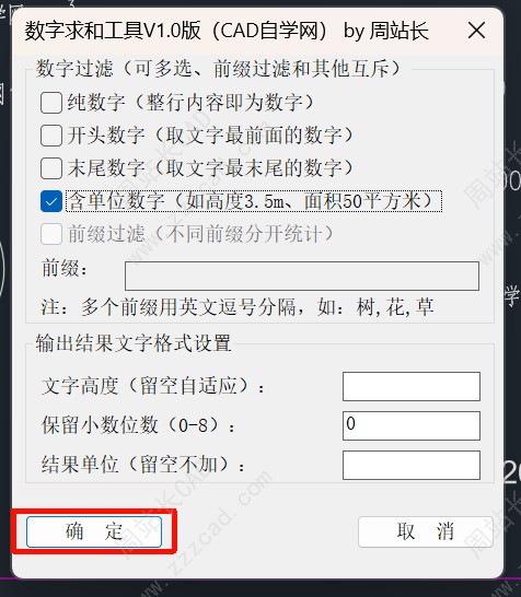 高度自由的输出设置:插入的统计结果非常智能:文字高度可根据当前视口自动缩放,支持自定义保留 0~8 位小数,你还可以为最终的求和结果统一加上“结果单位”。