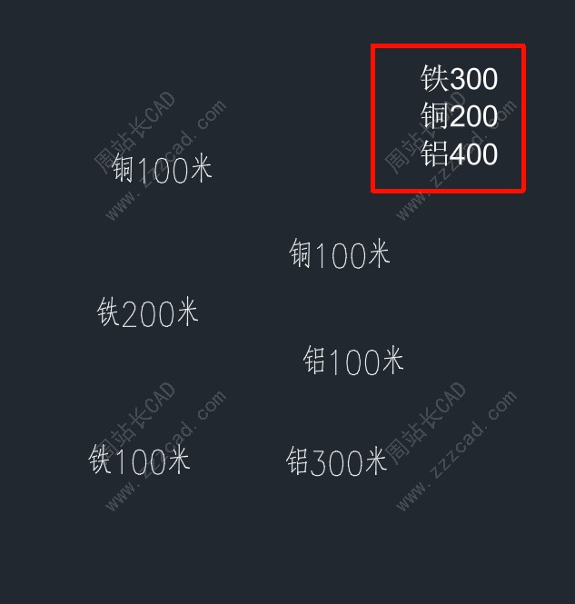 框选对象回车,旁边干扰文字不影响,不是纯数字不会统计。