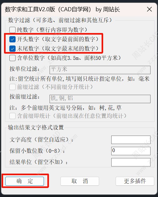 基础数字过滤: 支持提取纯数字、首尾数字及“数字+单位”组合。内置智能单位匹配功能,输入“平方米”即可自动等价识别㎡、m²、M2等所有形式。同时具备强大的MTEXT上标处理能力,完美规避上标误判(如100²绝不会被错认为1002)。
