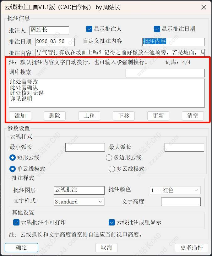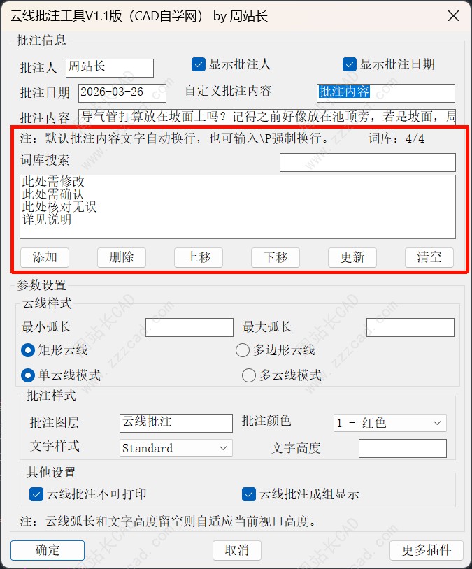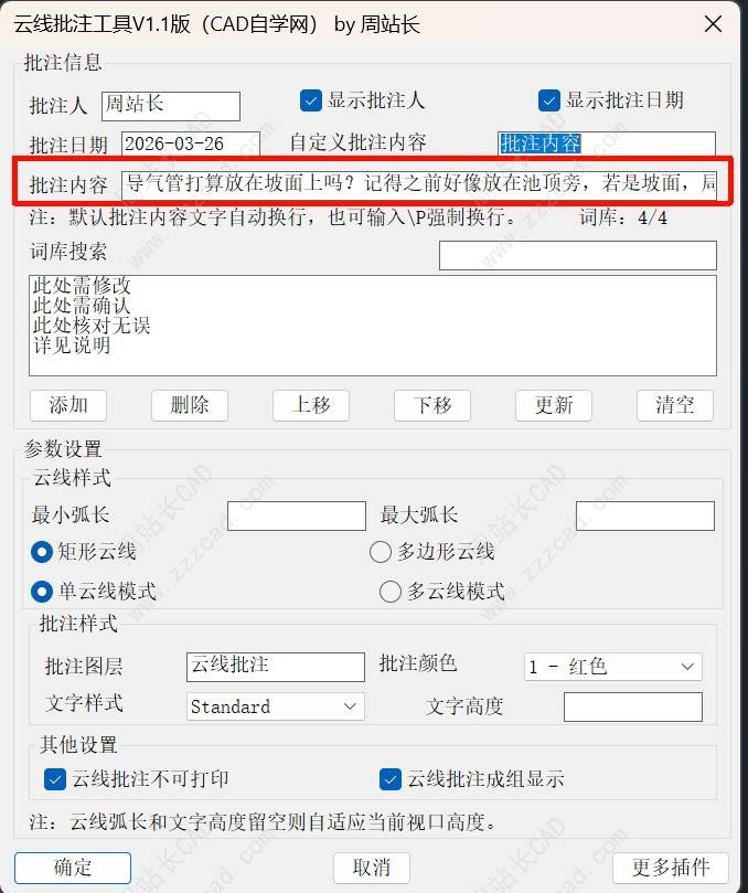 昨天发布了CAD云线批注工具,太受欢迎了,接很多用户反馈,做了三方面优化。新版界面如下: