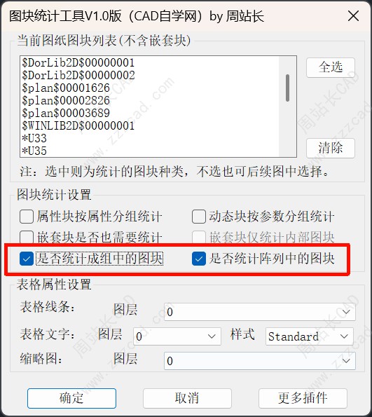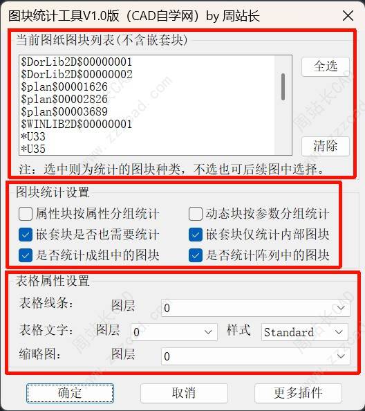 经常有用户让我搞一个图块统计工具,说他用的都不好用,尤其是嵌套块、属性块、动态块、组中的块、阵列中的块,很多插件没法全部统计,有时候很烦,现在全部一个插件搞定了,界面如下。