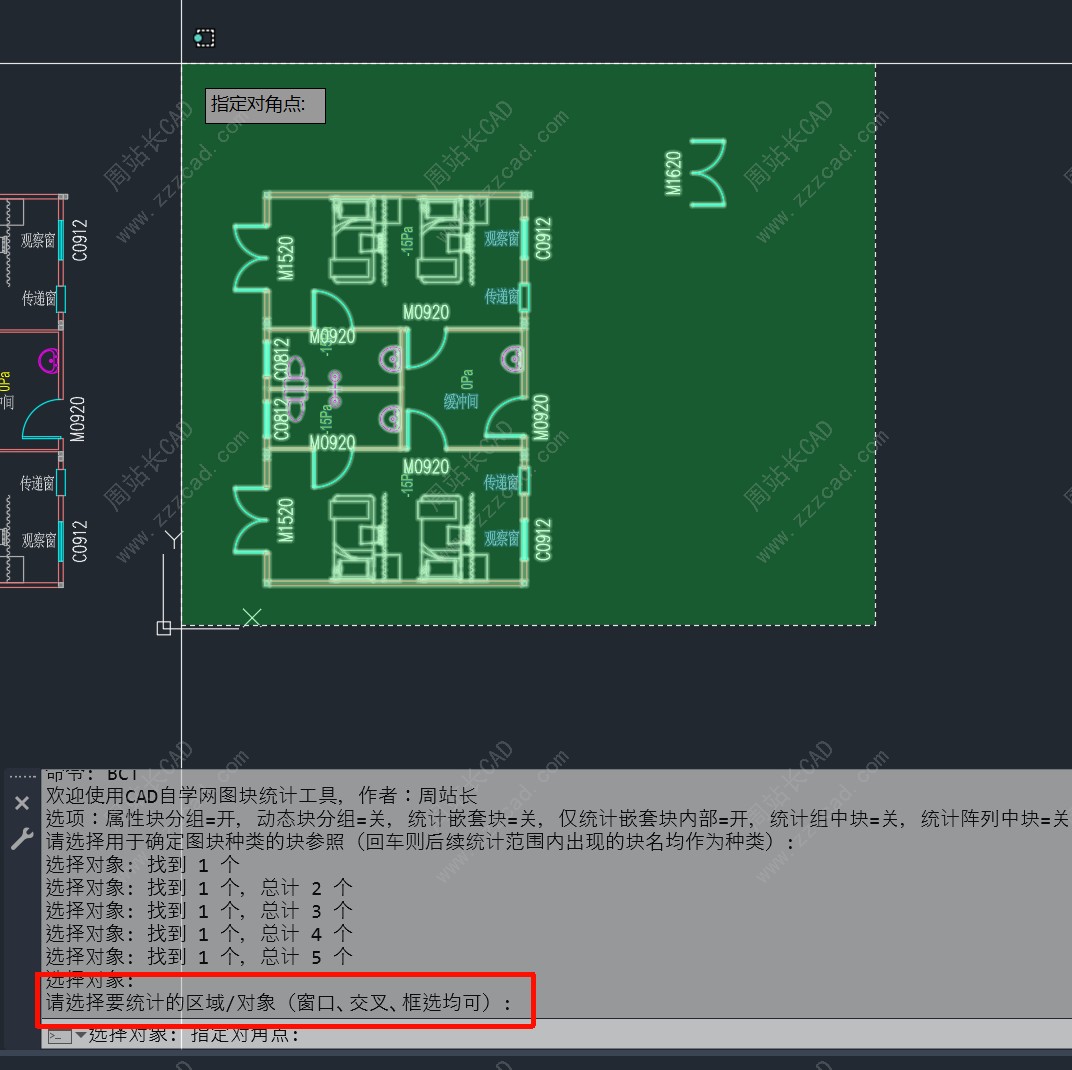 输入快捷键BCT回车,图块统计工具英文首字母。