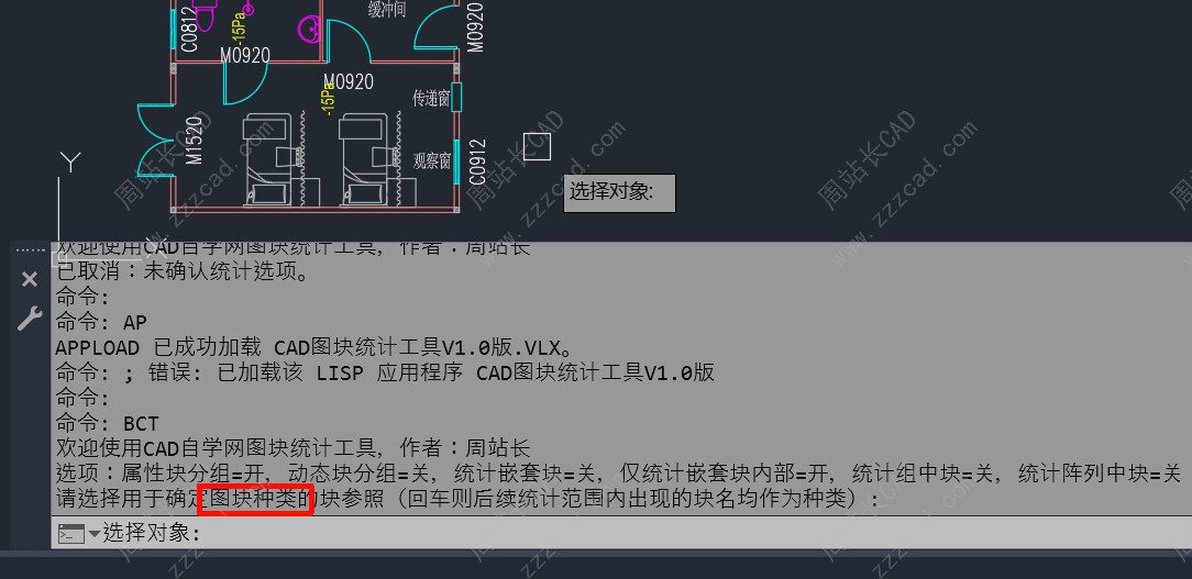 注:这一步块种类,要么从列表选择,要么从非嵌套块外选择种类,CAD中无法穿透选择嵌套块内对象。