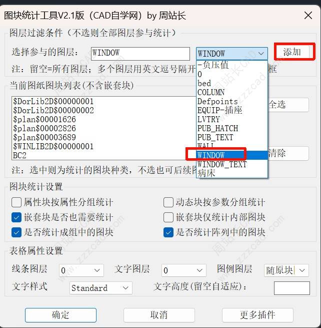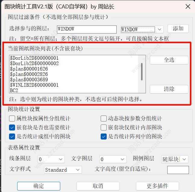 多维精准过滤: 支持通过下拉或输入指定“参与图层”(留空则全选);同名图块还能根据“属性”或“动态参数”进行精细化分组,告别混淆。