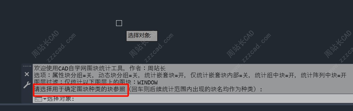 确定后提示你选择需要统计图块额种类,如果你在当前图纸图块列表有选择,这里可作为图块种类,不选择直接回车,后续区域内所有块都统计。
