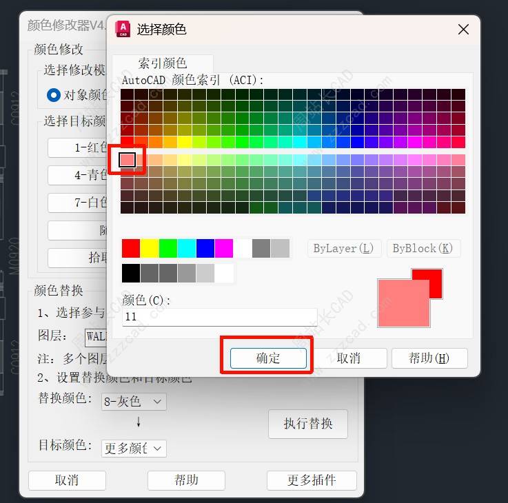 选择目标颜色,比如11号色,确定。