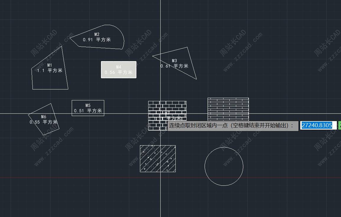 注:特别适合那种直线组成的封闭区域,点取不支持椭圆和样条。