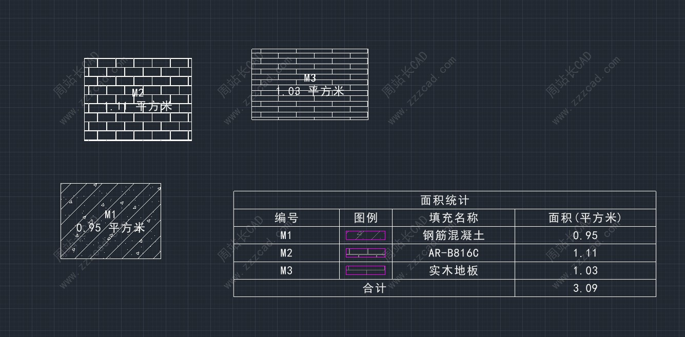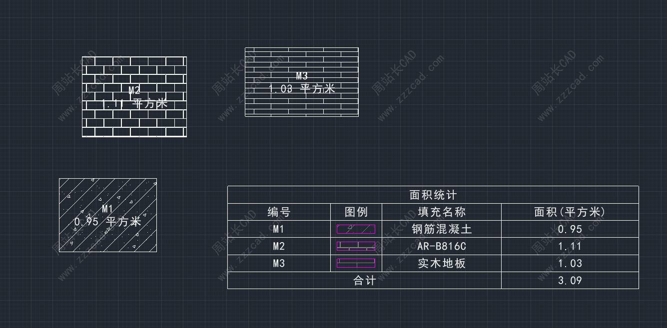 方式3:填充图案统计,可生成图例和填充图案名称。
