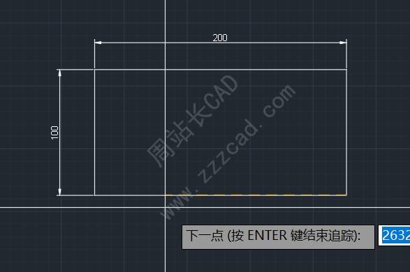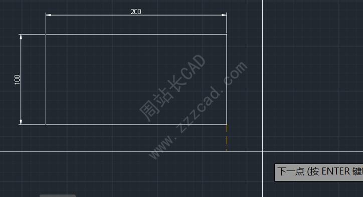 5、这时提示下一点,我们可以看到光标只可以往一个方向移动,如图所示是Y方向,如果我们需要切换方向,需要将光标移动到第一点处,再重新往X方向拉即可;