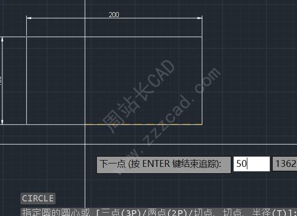 6、接着我们只需要输入圆心相对于第一点的位置即可。