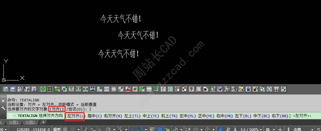 文字对齐命令:textalign。