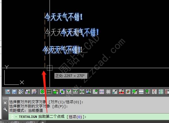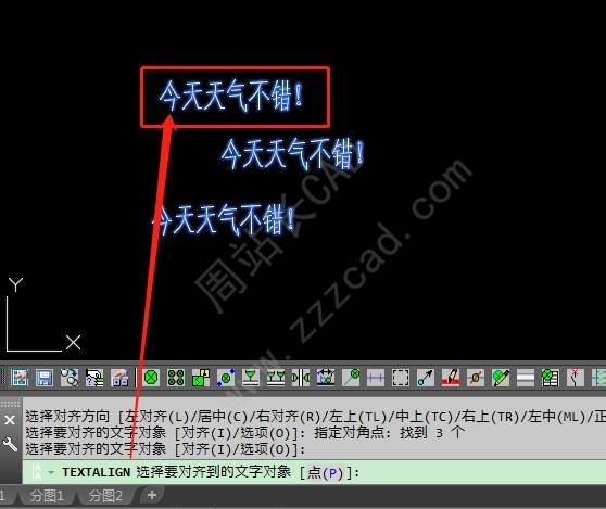 然后,根据命令行提示,选择需要进行对齐操作的文字对象。