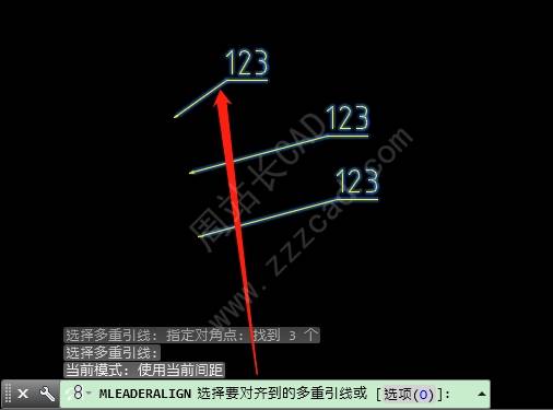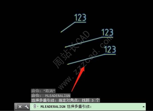 然后根据命令行提示,选择需要进行对齐操作的多重引线对象。