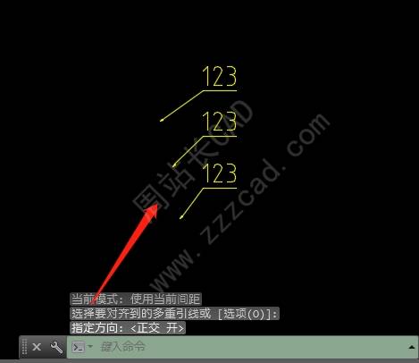 然后单击鼠标右键,命令行提示选择要对齐的引线,选择要对齐的引线。