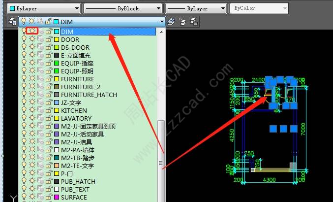 选中标注对象,然后图层工具栏,就会显示当前标注所在图层,单击图层工具下拉出图层,直接单击冻结图标,便可快速冻结标注对象图层。