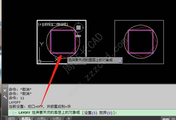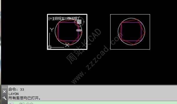 便可只冻结当前视口中的图层,其他视口中的同图层不会被冻结。