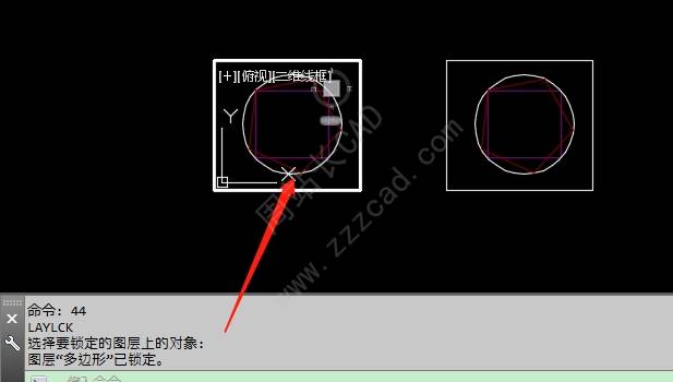 命令行输入44,选择要锁定的图层上的,对象,便可锁定图层。