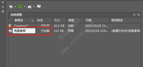 随之,外部参照窗口中,会显示参照文件已加载。