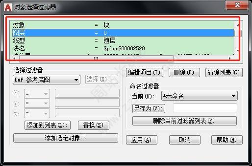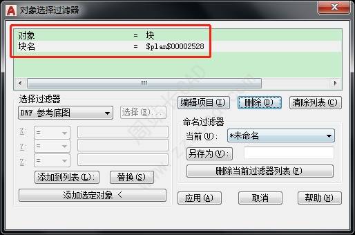 选中选项,将除对象及块名中的其他特性,删除。然后,单击应用。