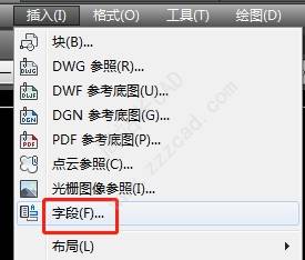 CAD菜单栏,单击插入选项卡,单击字段。