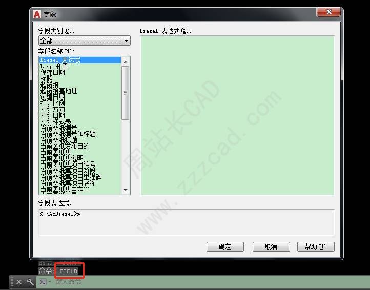 命令行输入field,随即便会弹出字段窗口!