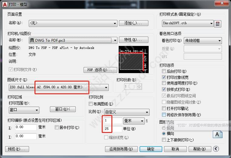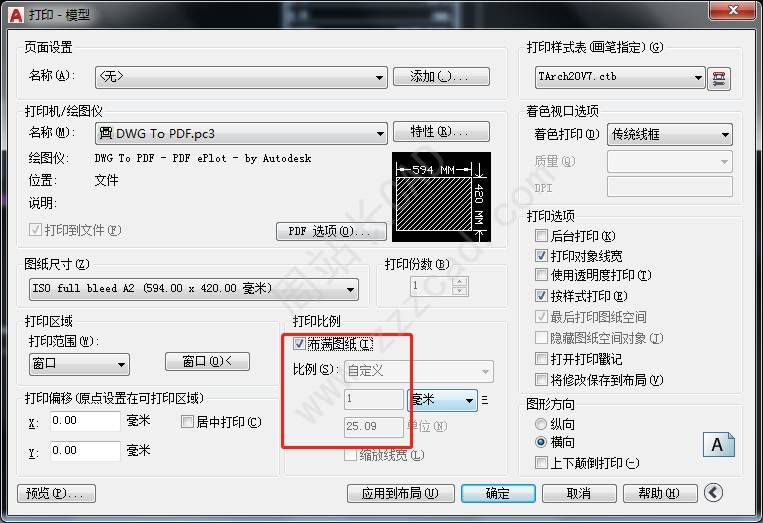 这是因为图纸尺寸,是A2的大小。图框本身也是A2的大小,所以,在选择了比例下打印,图框最外边的那个线框就应该与图纸的边重合,所以,如果设定了比例,就会出现外边图框打印不出来的结果。